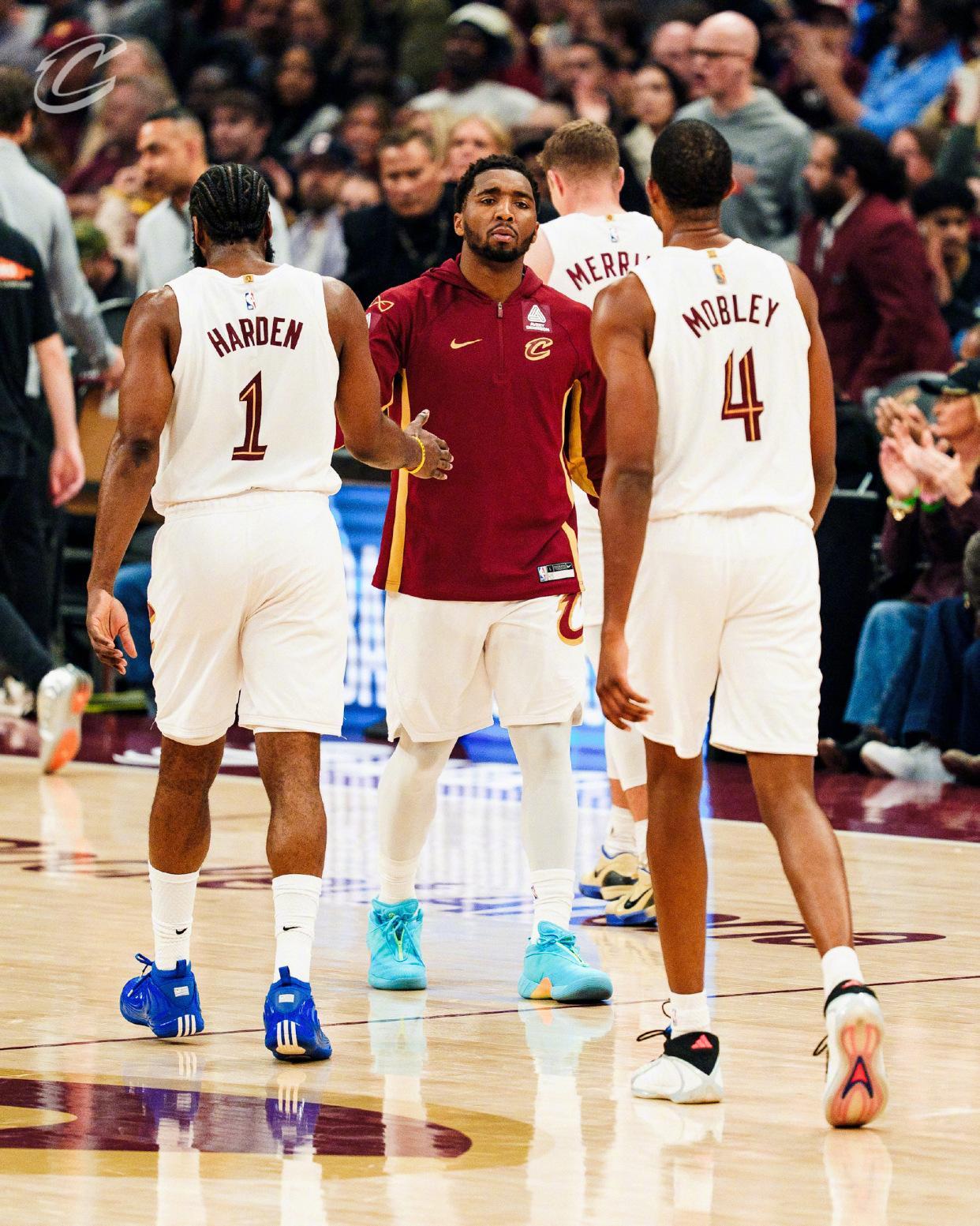 哈登21+5+4记3分,骑士险胜老鹰!米切尔31+7创纪录,莫布里22+19+3盖帽暴走!